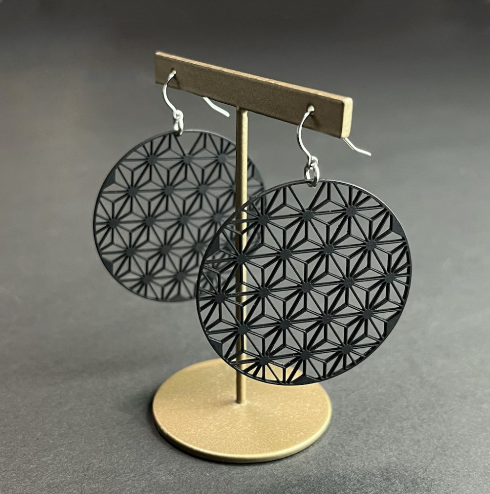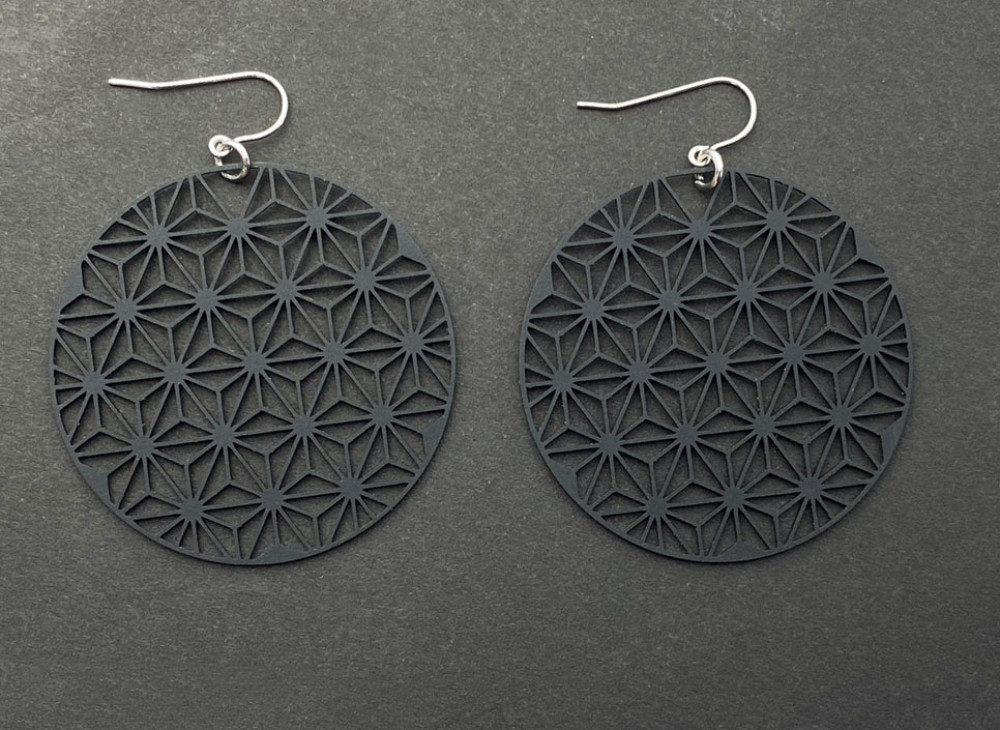 ステンレスピアス(マットブラック) 麻の葉(ASANOHA)
