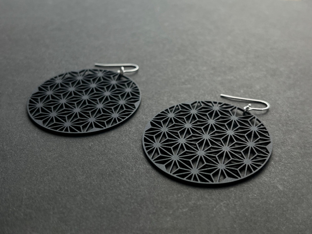- ステンレスピアス(マットブラック) 麻の葉(ASANOHA)