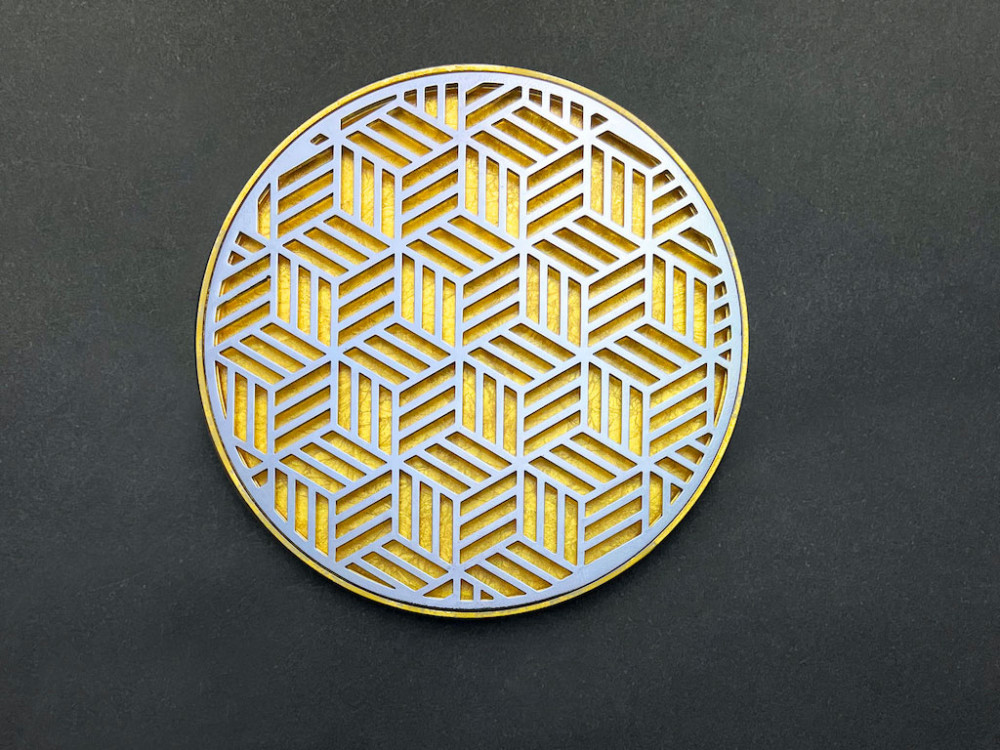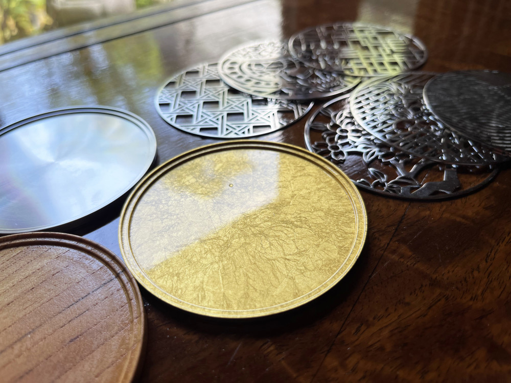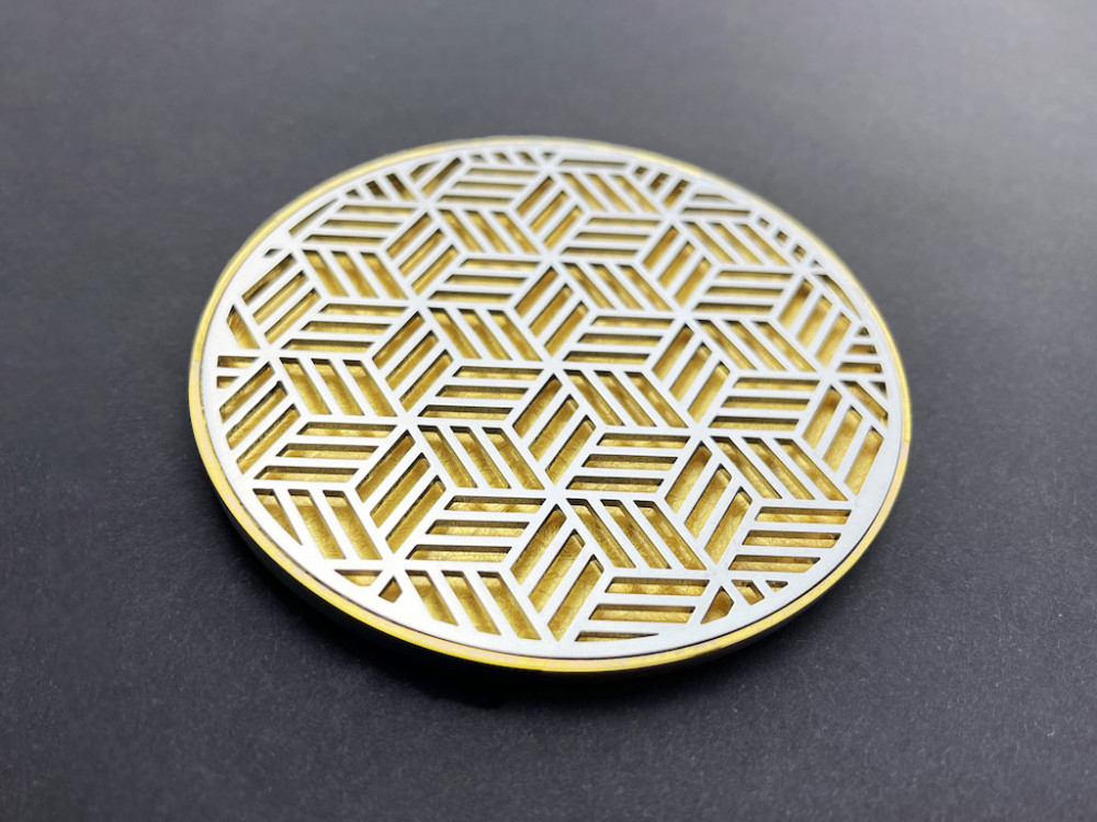 創業1899年、金沢の老舗金箔メーカー「カタニ産業株式会社」の本金箔をコースターベースに加工。トップにウレタンコーティングを施し表面保護も万全。