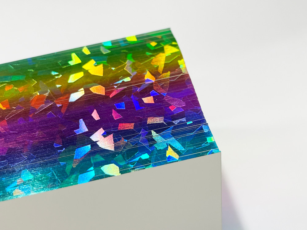 名前の通り、雪のような白さとふわっとした手触りが特徴的。サイドが虹色に光っているため存在感のあるカードです。