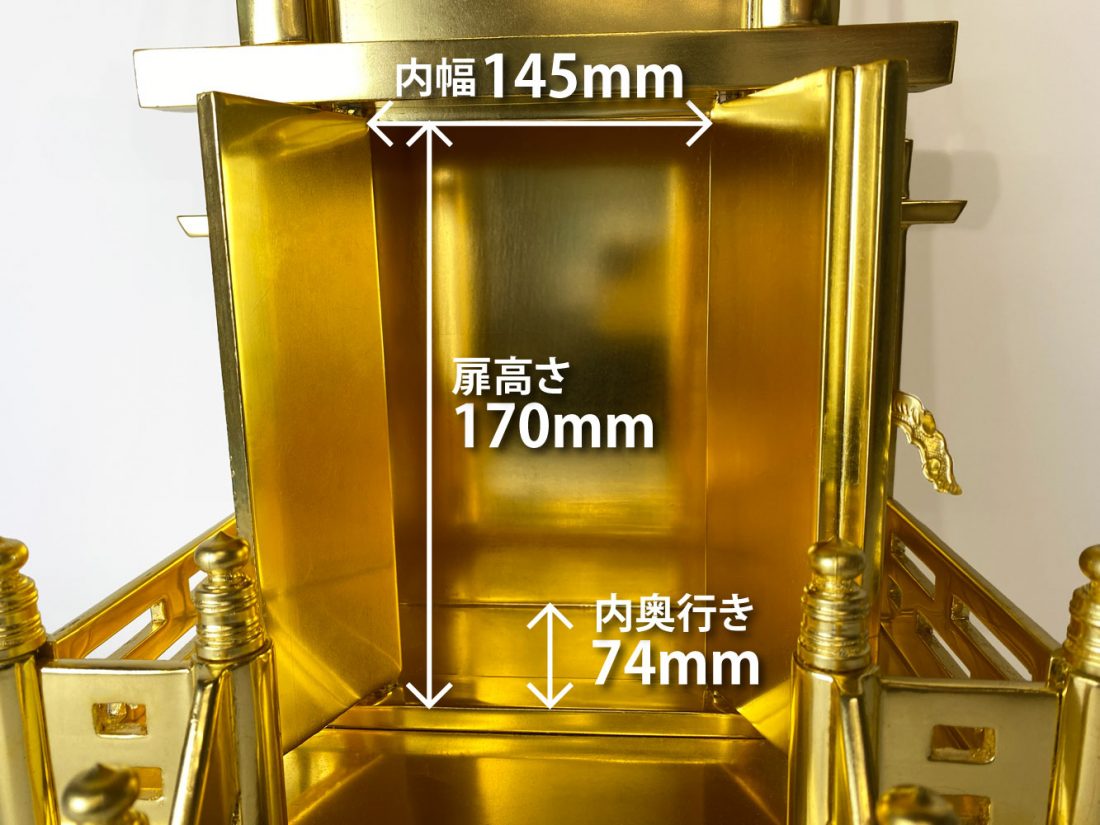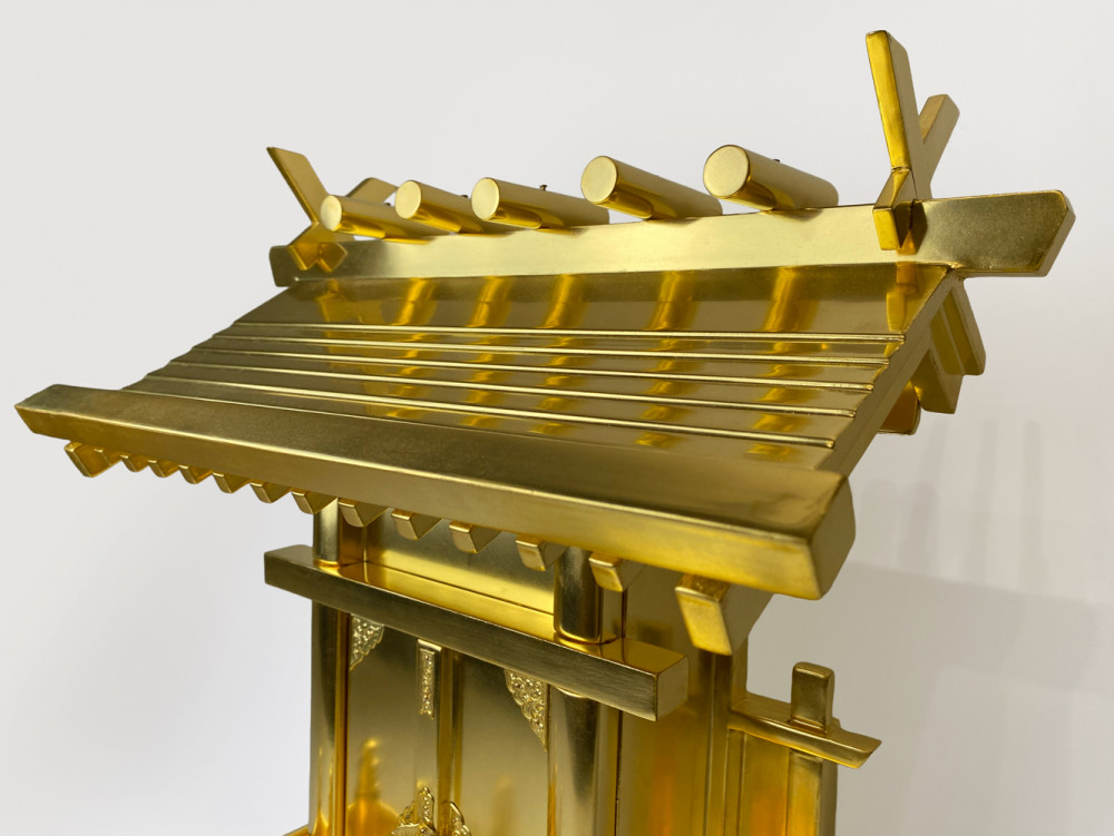 お部屋の広さや飾るグッズの量に合わせて、「大サイズ」「小サイズ」からお選びいただけます。どちらも、金箔の美しさと神棚としての格式はそのままです。