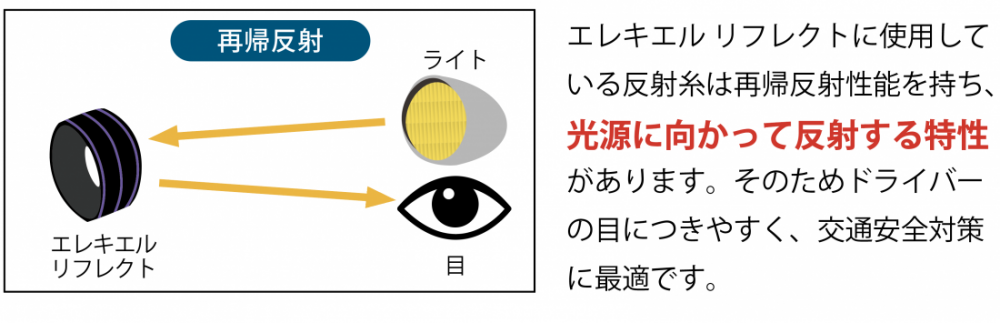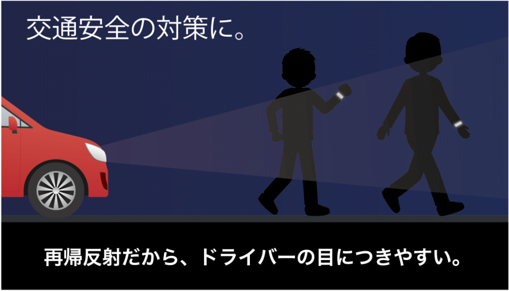 ★車のライトに強く反射するので、暗いところや夜道が安全に。