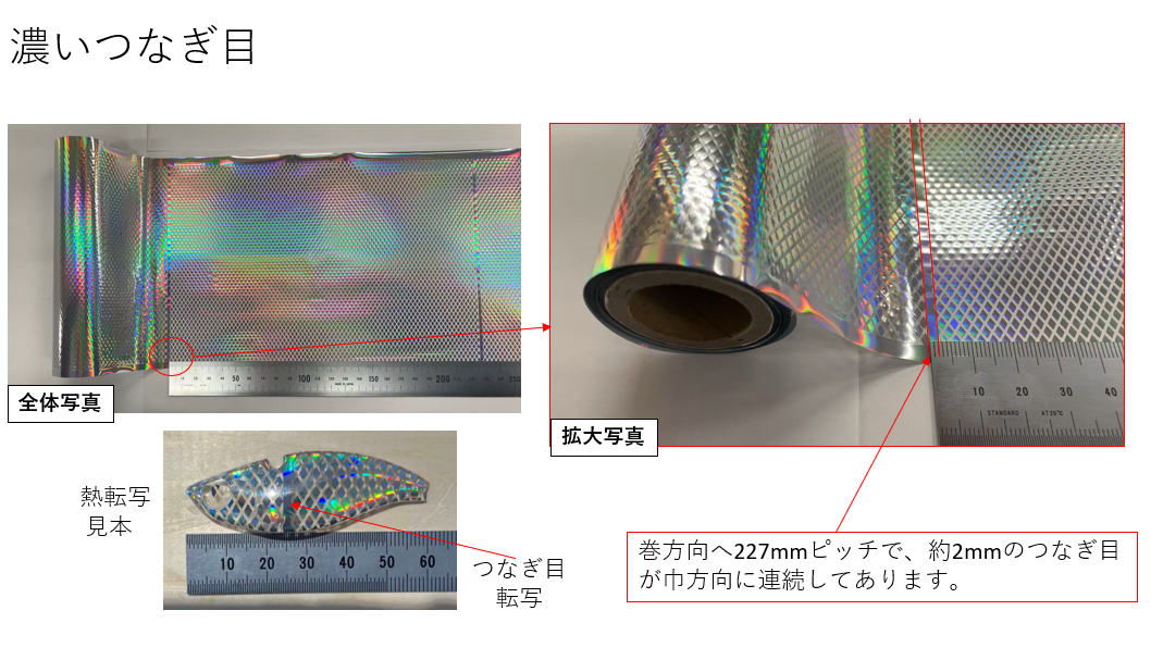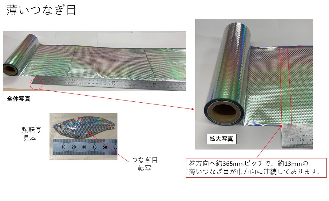 フィルムの流れ方向に対して約227mmごとに約2mmのつなぎ目が幅方向に連続して入ります