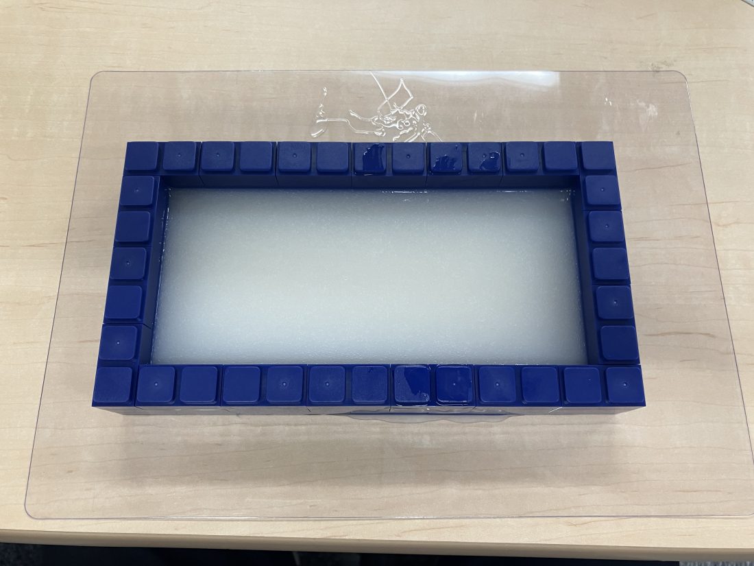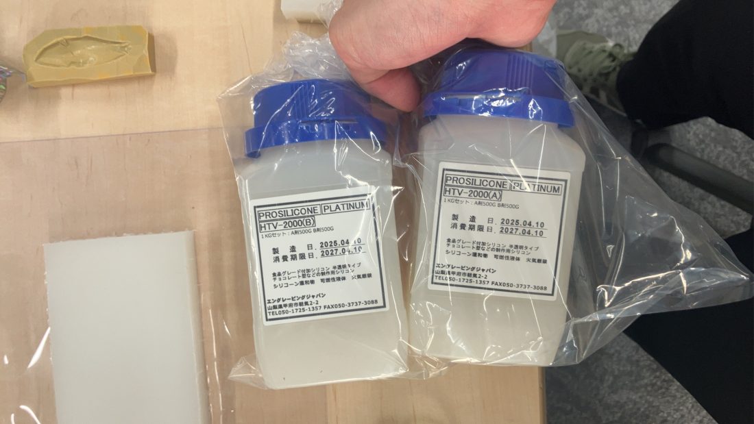 ●STEP 1 型へ液体流して約2cm厚の平たいシリコンを作成(シリコン耐熱性必須)